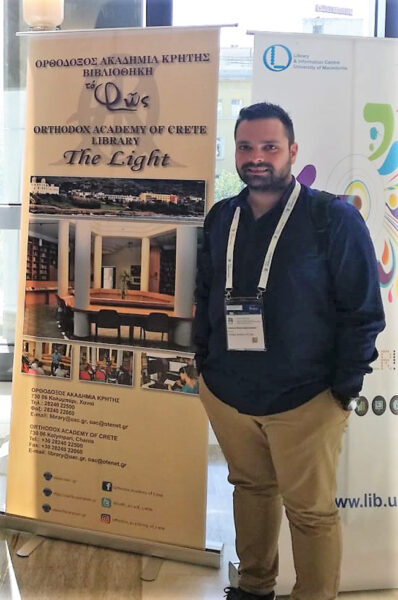 Τη Βιβλιοθήκη της Ορθοδόξου Ακαδημίας Κρήτης, «Το Φως», εκπροσώπησε –με την ευγενική χορηγία του Ιδρύματος Ωνάση / Onassis Foundation– ο Βιβλιοθηκονόμος του Ιδρύματος κ. Ιωάννης Μουντογιαννάκης, ο οποίος είχε κύκλο συναντήσεων με επίσημους φορείς του χώρου, όπως τον κ. Φίλιππο Τσιμπόγλου, Διευθυντή της Εθνικής Βιβλιοθήκης, την κ. Ανθή Κατσιρίκου, Μέλους ΕΕΒΕΠ και Προϊσταμένης της Βιβλιοθήκης του Πανεπιστημίου Πειραιώς, τον κ. Πάνο Κωνσταντόπουλο, Καθηγητή του Οικονομικού Πανεπιστημίου Αθηνών και Μέλους του Ερευνητικού Κέντρου Καινοτομίας στις Τεχνολογίες της Πληροφορίας των Επικοινωνιών και της Γνώσης, την κ. Βιβή Χουδαλάκη, Διευθύντρια της Δημοτικής Βιβλιοθήκης Χανίων κ.ά.