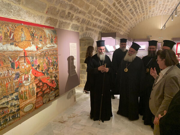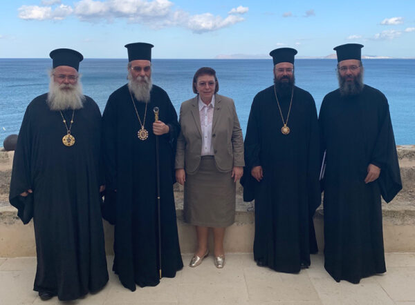 Αντιπροσωπεία της Εκκλησίας Κρήτης, αποτελούμενη από τους Σεβ. Μητροπολίτες Κισάμου και Σελίνου κ. Αμφιλόχιο, Πέτρας καί Χερρονήσου κ. Γεράσιμο καί Ιεραπύτνης και Σητείας κ. Κύριλλο, και τον Πανοσιολ. Αρχιμ. Πρόδρομο Ξενάκη, Αρχιγραμματέα της Ιεράς Επαρχιακής Συνόδου της Εκκλησίας Κρήτης, συναντήθηκε με την Εξοχ. κ. Λίνα Μενδώνη, Υπουργό Πολιτισμού και Αθλητισμού, στην Ιερά Πατριαρχική και Σταυροπηγιακή Μονή Παναγίας Κυρίας των Αγγέλων Γωνιάς στο Κολυμβάρι Κισάμου, το Σάββατο, 5 Οκτωβρίου 2019.