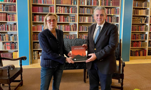 Από την Αθήνα ξεκινά ο “μαραθώνιος” ενημέρωσης της διεθνούς κοινής γνώμης για την Αγία Σοφία, όπου στις 23 Φεβρουαρίου, στο Ίδρυμα Μείζονος Ελληνισμού θα γίνει η πρώτη παρουσίαση του τόμου “Αγία Σοφία: Οι Ναοί της του Θεού Σοφίας ανά τον Κόσμο”. Ο Γενικός Γραμματέας της Διακοινοβουλευτικής Συνέλευσης Ορθοδοξίας (ΔΣΟ), Μέλος της Βουλής των Ελλήνων, δρ. Μάξιμος Χαρακόπουλος επισκέφθηκε σήμερα την πρόεδρο της ΕΣΗΕΑ, Μαρία Αντωνιάδου, για να της επιδώσει τον Τόμο και να της ζητήσει να είναι η συντονίστρια της εκδήλωσης, κάτι που έκανε ασμένως δεκτό.
