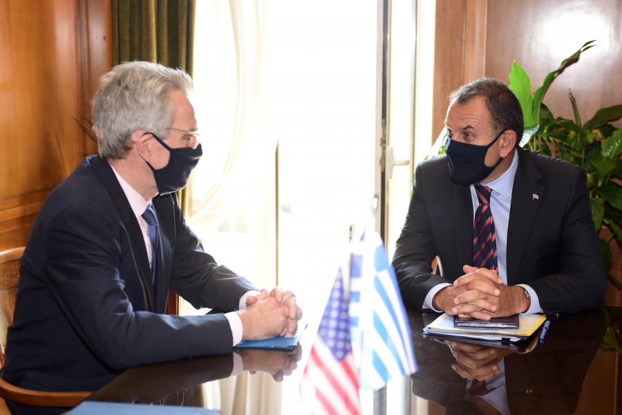 O Υπουργός Εθνικής Άμυνας κ. Νικόλαος Παναγιωτόπουλος συναντήθηκε σήμερα με τον Πρέσβη των Ηνωμένων Πολιτειών Αμερικής στην Ελλάδα κ. Τζέφρυ Πάιατ (GeoffreyPyatt), με τον οποίο συζήτησε τις προκλήσεις ασφάλειας και σταθερότητας στην Ανατολική Μεσόγειο από την τουρκική παραβατική συμπεριφορά, εντός της Ελληνικής Υφαλοκρηπίδας.