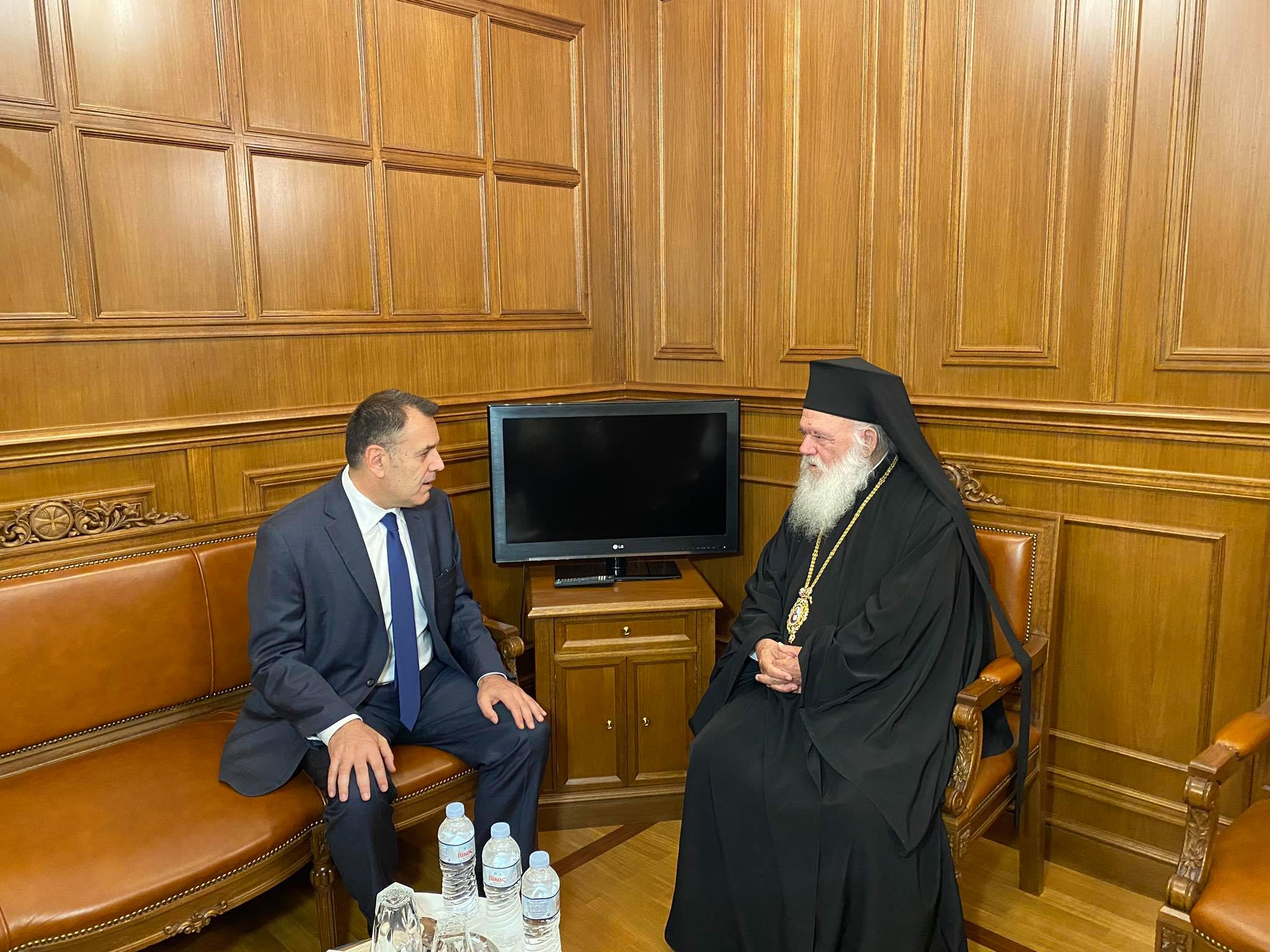 Λίγο μετά τις 11 το πρωί έφθασε στη ΔΙΣ ο Υπουργός Εθνικής Αμύνης κ. Νικόλαος Παναγιωτόπουλος προκειμένου να του επιδοθεί, ως δωρεά της Εκκλησίας της Ελλάδος, ειδικός εξοπλισμός για χρήση από τις Ελληνικές Ένοπλες Δυνάμεις.