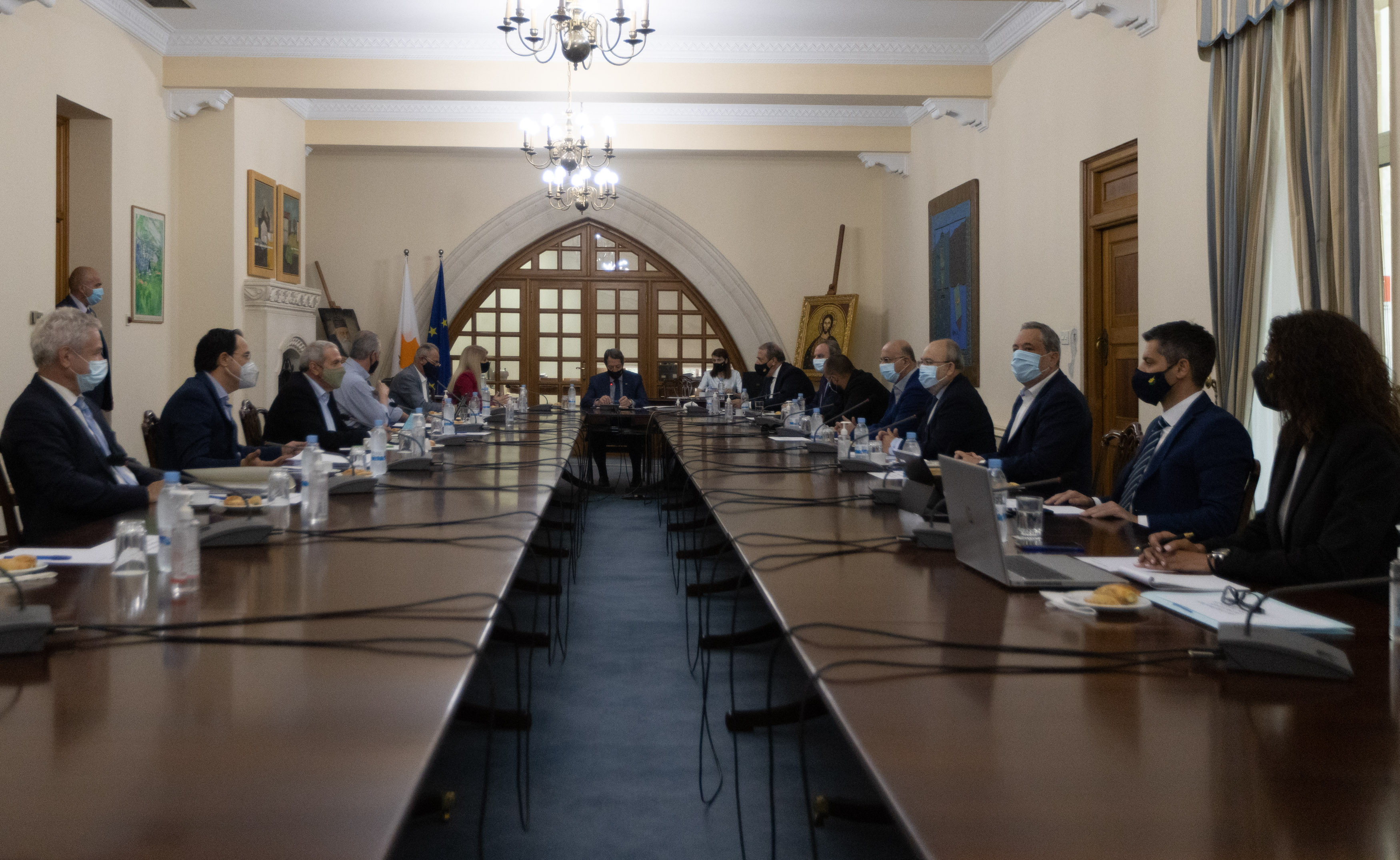 Ο Πρόεδρος της Κυπριακής Δημοκρατίας κ. Νίκος Αναστασιάδης προήδρευσε σήμερα, Τετάρτη 14 Ιουλίου 2021, στο Προεδρικό Μέγαρο, σύσκεψης του Εθνικού Συμβουλίου, στην παρουσία του Γενικού Εισαγγελέα της Δημοκρατίας και του Δημάρχου Αμμοχώστου κ. Σίμου Ιωάννου.