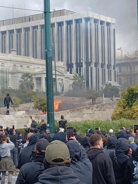 Τα σοβαρά επεισόδια που συγκλονίζουν το κέντρο της Αθήνας από το μεσημέρι της Παρασκευής (28/2), μετά το τέλος του ειρηνικού μεγαλειώδους συλλαλητηρίου στη μνήμη των θυμάτων του σιδηροδρομικού δυστυχήματος των Τεμπών έφτασαν μέχρι τη Μητρόπολη Αθηνών, λίγη ώρα μάλιστα μετά το Τρισάγιο υπέρ αναπαύσεως των ψυχών των θυμάτων της παλαιμάκτου τραγωδίας που τέλεσε ο Αρχιεπίσκοπος Αθηνών και πάσης Ελλάδος κ.κ. Ιερώνυμος.