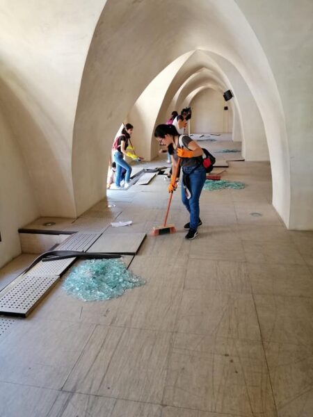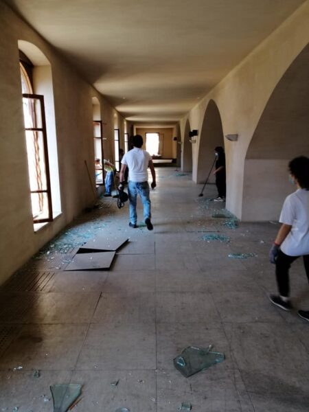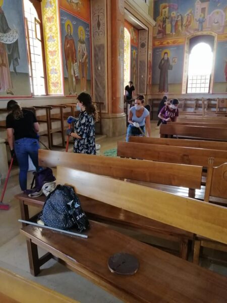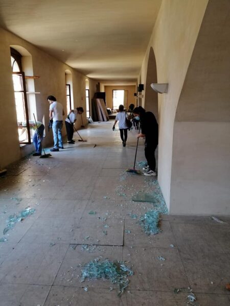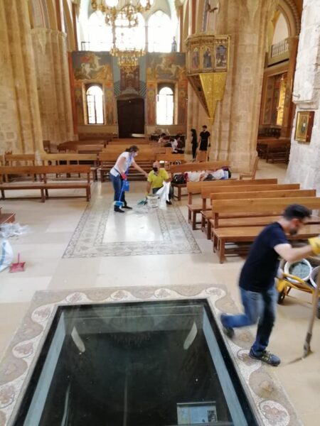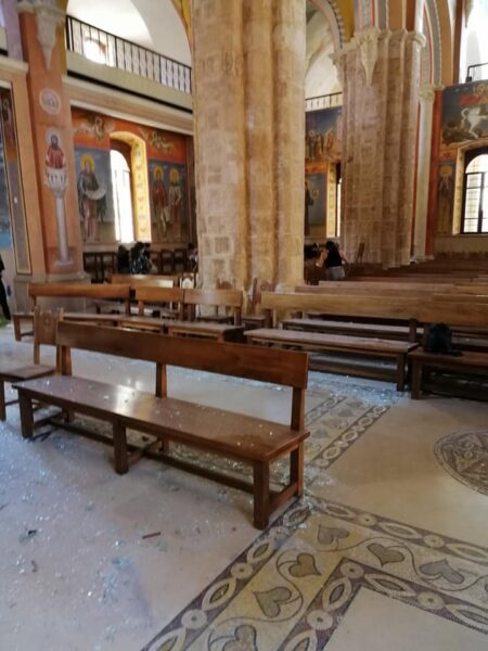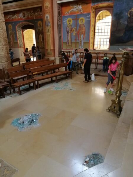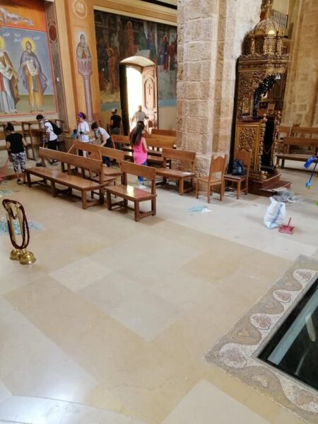Συνεχίζονται οι επισκευές και οι εργασίες αποκατάστασης με αμείωτο ρυθμό στον Καθεδρικό Ιερό Ναό του Αγίου Γεωργίου στη Βηρυτό. Όπως φαίνεται στις φωτογραφίες πολλοί πιστοί βοηθάνε στην αποκατάσταση των ζημιών που σημειώθηκαν από την φονική έκρηξη στις 4 Αυγούστου στο λιμάνι της Βηρυτού στο Λίβανο. Ο Ιερός Ναός έχει σχεδόν καθαριστεί από τα θραύσματα.