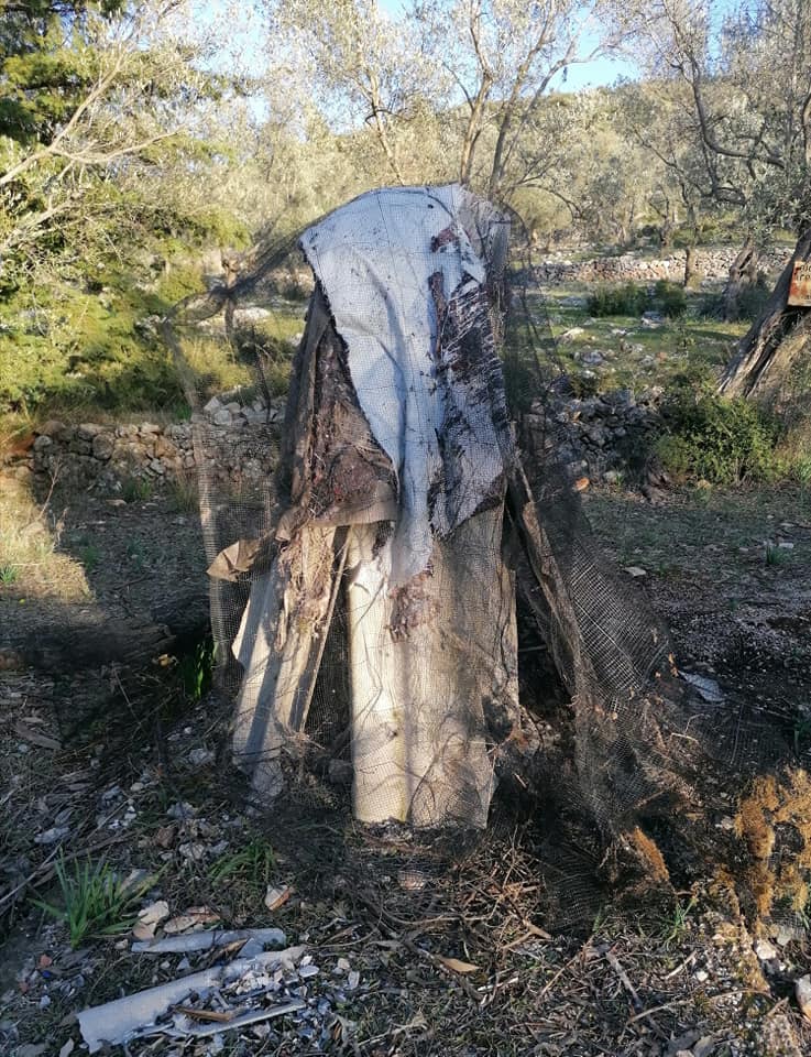 “Προσκυνητάρι με εικόνες στη Μόρια καλυμμένο με δίχτυα και λαμαρίνες λίγο πριν από τα μέτρα για τον κορωνοϊό, προκειμένου να μην δίνει στόχο για όσους βανδαλίζουν χριστιανικά σύμβολα στην περιοχή. Και το ίδιο όπως έμεινε σήμερα”.