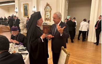 Οn the sidelines of a dinner for the representatives of foreign governments, FM Kaskarelis congratulated 🇹🇷 President @RTErdogan & had brief discussions w/ HA Holiness Ecumenical Patriarch Bartholomew, new #Türkiye FM Hakan Fidan & new MIT Director Ibrahim Kalin pic.twitter.com/1LsQl0IqCj