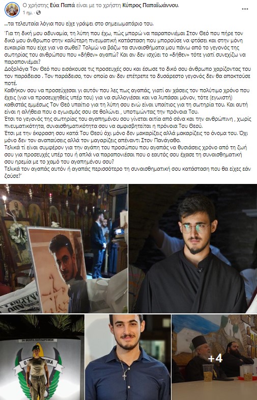 Τα τελευταία λόγια από το σημειωματάριο του Κυπριανού Παπαϊωάννου δημοσίευσε η αδελφή του σε μέσο κοινωνικής δικτύωσης.