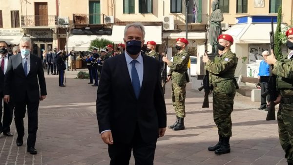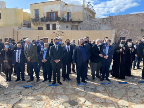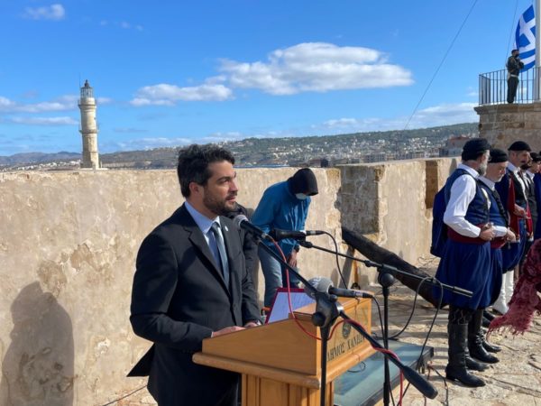 Ο υπουργός Eσωτερικών Μάκης Βορίδης τόνισε στις δηλώσεις του ότι βρίσκεται σήμερα εδώ για να μεταφέρει τον χαιρετισμό του πρωθυπουργού Κυριάκου Μητσοτάκη, ενώ χαρακτήρισε εθνική ολοκλήρωση την Ένωση της Κρητικής Πολιτείας με την Ελλάδα, μια ολοκλήρωση που συνοδεύεται από μακροχρόνιες θυσίες και αγώνες.