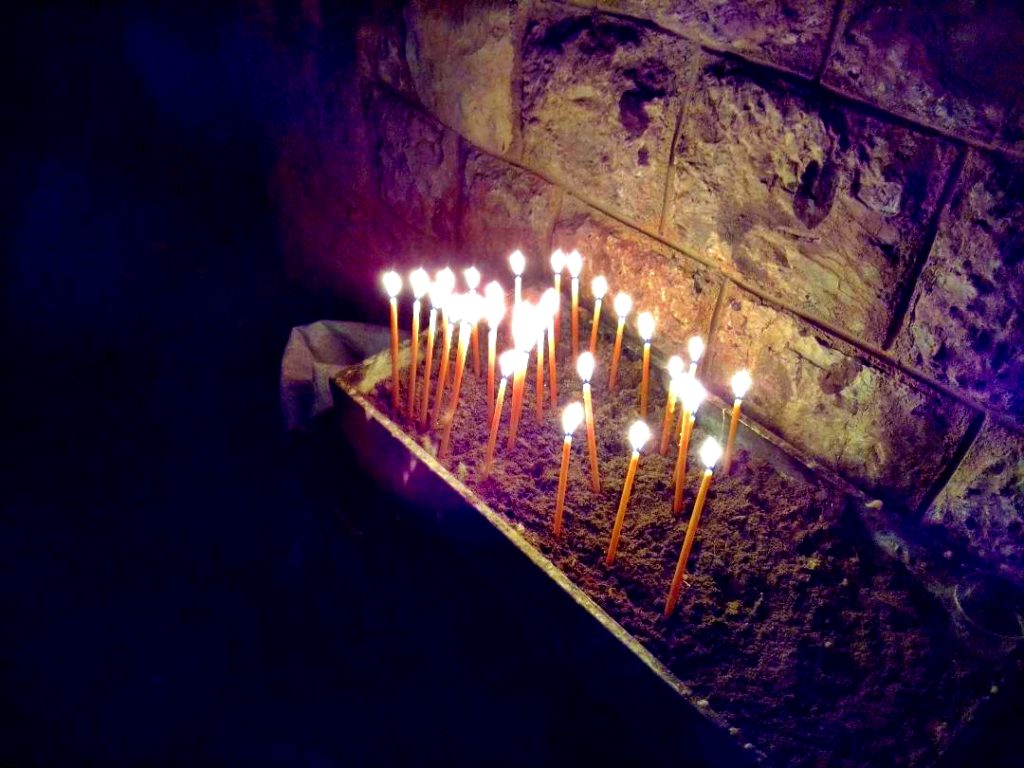 Στο ως άνω φωτογραφικό στιγμιότυπο, τα κεράκια των ευλαβών πιστών κατά την εσπέρα της 18ης Φεβρουαρίου 2021, παραμονής της εορτίου μνήμης της Αγίας Φιλοθέης, έξω ακριβώς από την Κρύπτη της Αγίας στο ομώνυμο προάστιο των Αθηνών.