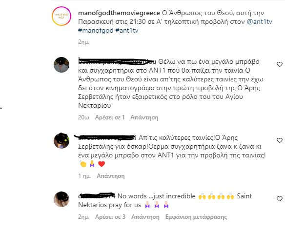 Παρακάτω διαβάστε μερικά σχόλια από το Instagram στο προφίλ “manofgodthemoviegreece“:
