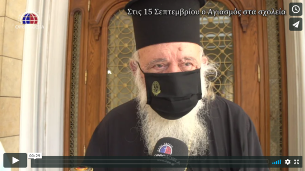 «Ο Αγιασμός στα σχολεία θα γίνει στις 15 Σεπτεμβρίου. Γιατί στις 14 θα έχουμε λειτουργίες. Να ευχηθούμε για τα παιδιά να έχουν πρόοδο και μακριά από τα παιδιά μας οι αρρώστιες», υπογράμμισε ο Μακαριώτατος.