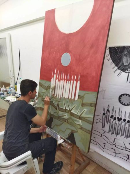 Μέσα σε διάστημα 20 ημερών, δουλεύοντας για αρκετές ώρες καθημερινά, ανά 2 ή 3 άτομα, προσπάθησαν να απαντήσουν στο ερώτημα, πώς θα μπορούσε η σύγχρονη βυζαντινή τέχνη να ανταποκριθεί σε ένα σύγχρονο θέμα και έτσι δημιούργησαν έναν πίνακα, όπου με τη βυζαντινή ζωγραφική συνυπάρχουν στοιχεία κυβισμού, ρωσικής πρωτοπορίας και μοντερνισμού.