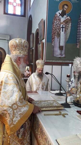 Στον Ιερό Ναό της Παναγίας Τριάδος, στην Μύρινα της Λήμνου, τελέστηκε το πρωί της Κυριακής 6 Οκτωβρίου 2019, Δισαρχιερατικη Θεία Λειτουργία, συνιερουργησάντων των Σεβασμιωτάτων Μητροπολιτών Σύρου κ. Δωροθέου Β’ και Θεσσαλιώτιδος κ. Τιμοθέου, συνευχομένου εντός του Ιερού Βήματος του Σεβασμιωτάτου Τοποτηρητού, Μητροπολίτου Μυτιλήνης κ. Ιακώβου και με την παρουσία των εκπροσώπων των τοπικών πολιτικών και στρατιωτικών Αρχών και των Σωμάτων Ασφαλείας και μεγάλου πλήθους πιστών, προ του πέρατος της οποίας τελέσθηκε το Τεσσαρακονθήμερο Μνημόσυνο του μακαριστού Μητροπολίτου Λήμνου Ιεροθέου, στο οποίο προσήλθαν και άπαντες οι Κληρικοί της Ιεράς Μητροπόλεως Λήμνου.