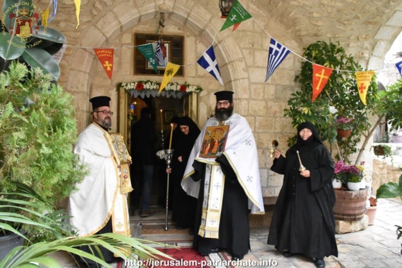 For this Feast Vespers was held in the aforementioned Monastery in the evening and the Divine Liturgy was celebrated on the morning of the Feast, officiated by the Most Reverend Archbishop Aristarchos of Constantina, with co-celebrants Hagiotaphite Hieromonks and Deacons. The chanting was delivered by the Choir Leader of the Church of the Resurrection Mr. Constantinos Spyropoulos and the Patriarchal School students, with the attendance of a large congregation of local faithful and pilgrims.