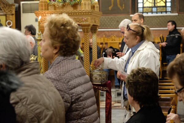 12/11/2019 12/11/2019 Ιερατικό συλλείτουργο τελέστηκε σήμερα στον ιερό ναό του Αγίου Ιωάννου του Χρυσοστόμου ιερουργούντος του Καθηγουμενου της Ιεράς Μεγίστης Μονής Βατοπαιδίου Γέροντος Εφραίμ. Στον εν λόγω ναό τέθηκε προς προσκύνηση και αγιασμό των ευσεβών χριστιανών η τίμια κάρα του Αγίου Χρυσοστόμου την οποία μετέφερε ο γέροντας Εφραίμ με την Βατοπαιδινή αδελφότητα. Στην ομιλία του ο Γέροντας...