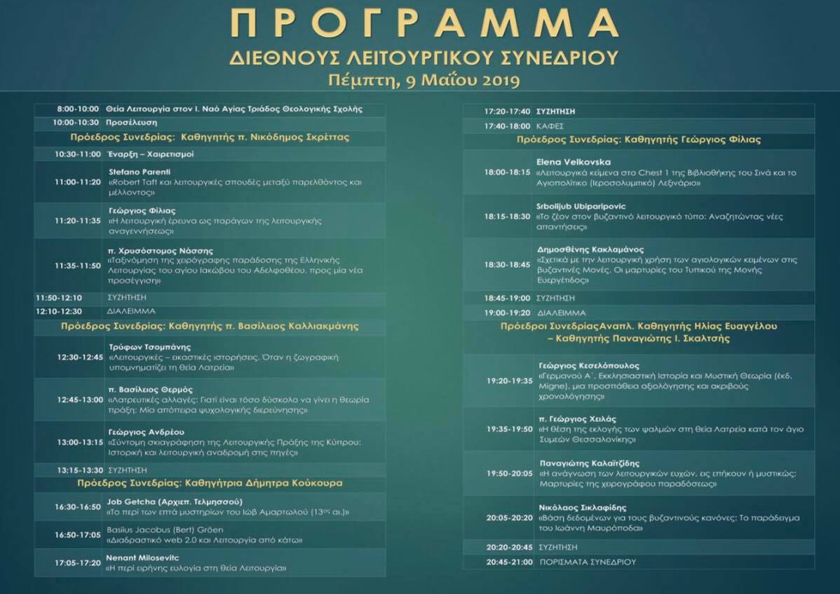 09/05/2019 09/05/2019 Ξεκίνησαν σήμερα το πρωί Πέμπτη 9 Μαΐου στο Α΄ αμφιθέατρο της Θεολογικής Σχολής του ΑΠΘ, οι εργασίες του Διεθνούς Λειτουργικού Συνεδρίου με θέμα: «Θεολογία και λατρεία: Αναφορά στη σύγχρονη περί την λειτουργική επιστήμη έρευνα» που πραγματοποιείται στη μνήμη του μακαριστού καθηγητή της λειτουργικής π. Robert Taft. Το εν λόγω Συνέδριο διοργανώνει το Εργαστήριο Χριστιανικής Λατρείας...