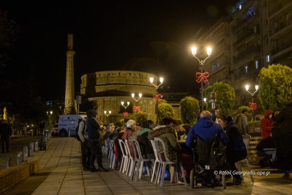 Χριστούγεννα 2022 και η ώρα είναι 06:00 μ.μ. έξω από τον Ιερό ναό της Παναγίας Δεξιάς έχει στηθεί ένα απέραντο τραπέζι για να χορτάσει κάθε πεινασμένο και διψασμένο αδελφό που οι συγκυρίες της ζωής τον ανάγκασαν να μην έχει ένα πιάτο φαί. Για έβδομη συνεχή χρονιά η Εθελοντική Διακονία Αστέγων με πάρα πολλούς διακινητές και με επικεφαλής την κα Κυριακή Φράγκου, επιμελήθηκαν το τραπέζι αυτό και στάθηκαν δίπλα σε όλους τους ευάλωτους ανθρώπους της Θεσσαλονίκης, θύματα της αστεγίας και όχι μόνο.