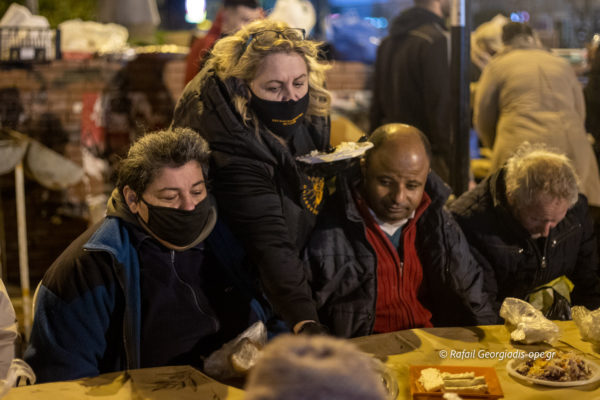 Παράλληλα, μαζί με το φαγητό μοιράζονται ρούχα, παπούτσια καθώς και κλινοσκεπάσματα και sleeping-bags. Πάνω απ’ όλα όμως, αυτό που χαρίζει όλο το επιτελείο σε όλους τους αναξιοπαθούντες αδελφούς μας είναι μία αγκαλιά, μία παρήγορη κουβέντα, ένα άγγιγμα στον ώμο γιατί η μεγαλύτερη δοκιμασία τους είναι η μάχη τους με τη μοναξιά.