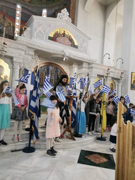 Ο π. Μακάριος συνομίλησε μαζί τους, αναφέρθηκε στα σημαντικά γεγονότα που τιμάμε σήμερα και τα κάλεσε να αγαπούν και να σέβονται την ιστορία και τον τόπο μας.