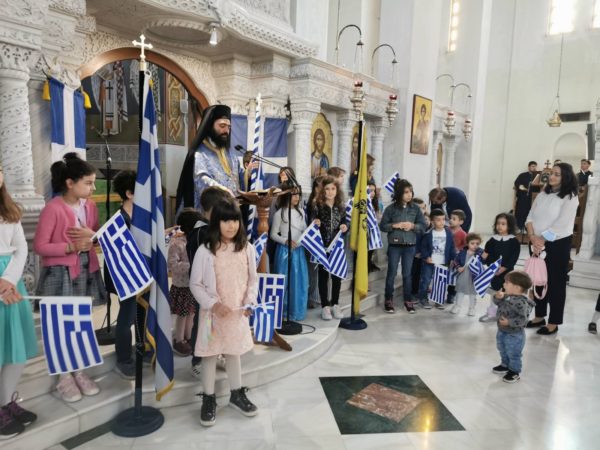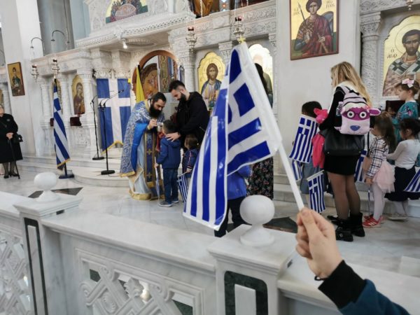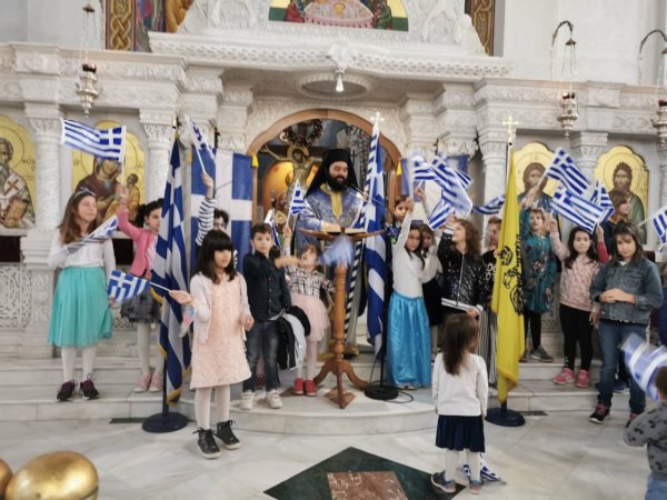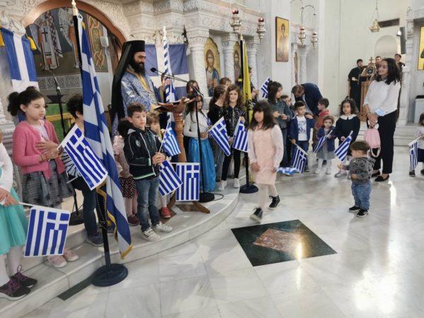 Ο π. Μακάριος συνομίλησε μαζί τους, αναφέρθηκε στα σημαντικά γεγονότα που τιμάμε σήμερα και τα κάλεσε να αγαπούν και να σέβονται την ιστορία και τον τόπο μας.