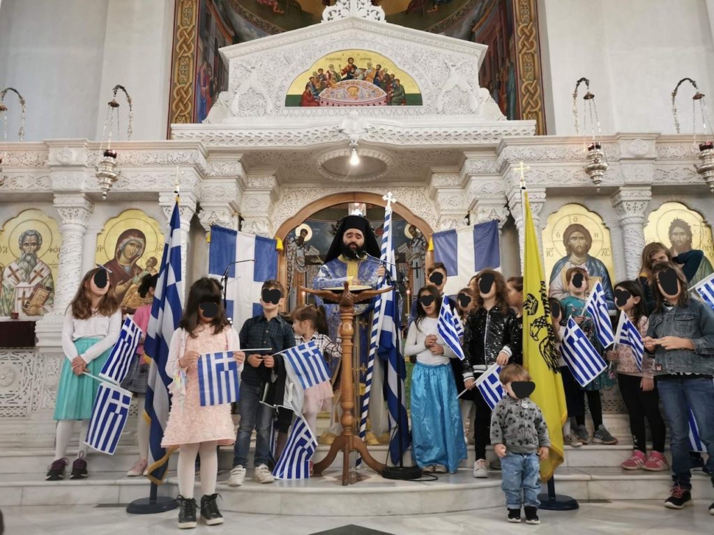 Ο π. Μακάριος συνομίλησε μαζί τους, αναφέρθηκε στα σημαντικά γεγονότα που τιμάμε σήμερα και τα κάλεσε να αγαπούν και να σέβονται την ιστορία και τον τόπο μας.