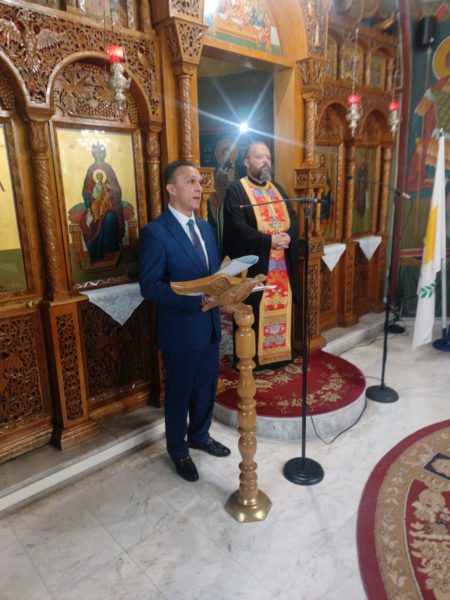 Με αισθήματα βαθιάς συγκίνησης, απέραντης περηφάνιας και ξεχωριστής τιμής παρευρίσκομαι σήμερα εδώ στον Ιερό Ναό των Αγίων Κωνσταντίνου και Ελένης στην πολύ τιμητική θέση να εκφωνήσω τον επετειακό λόγο μνήμης και ανείπωτης θλίψης για τις μαύρες επετείους του προδοτικού πραξικοπήματος και της βάρβαρης τουρκικής εισβολής του Ιουλίου του 1974 που σημάδεψαν την Ιστορία και το σώμα της Κύπρου μας.