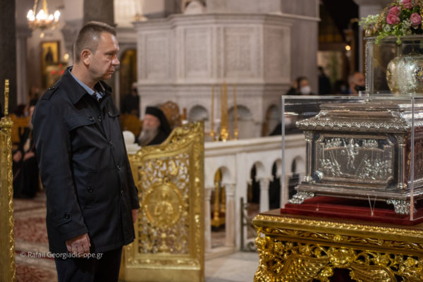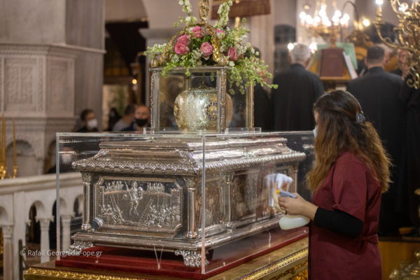 Με ιδιαίτερες τιμές η Θεσσαλονίκη τιμά και φέτος τον πολιούχο της Άγιο Δημήτριο. Ο πανηγυρικός Εσπερινός τελέσθηκε με την πρέπουσα εκκλησιαστική τάξη, ενώ οι πιστοί με σεβασμό στην Εκκλησία τήρησαν όλα τα προβλεπόμενα μέτρα υγειονομικής προστασίας. Κλήρος και λαός με την χρήση μάσκας και με την διατήρηση της απαιτούμενης απόστασης προσευχήθηκαν, για να τιμήσουν τον προστάτη τους.