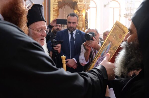 Στον Πατριάρχη προσφέρθηκε μια πρωτότυπη εικόνα με τον Αγ. Βαρθολομαίο Ένθρονο.