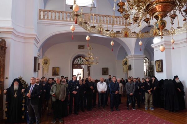Τον υποδέχτηκε ο Καθηγούμενος της Ι .Μ. Παντοκράτορος Αρχιμ. Γαβριήλ και ο Δικαίος της Σκήτης Ιερομόναχος Ιωακείμ. Στο Καθολικό εψάλη Δοξολογία.
