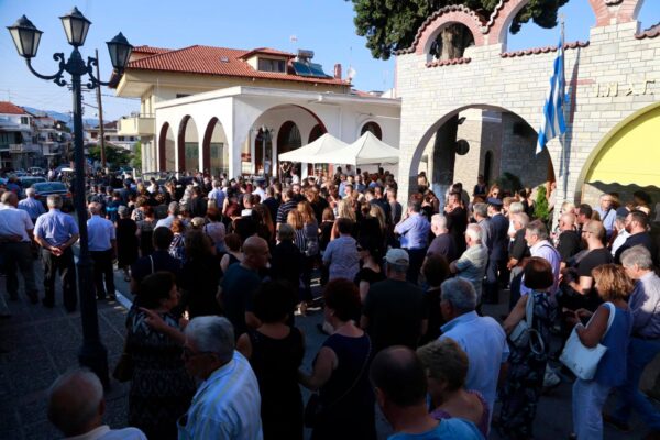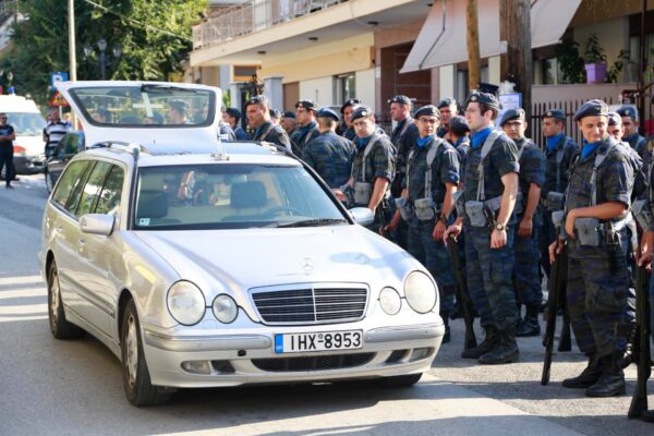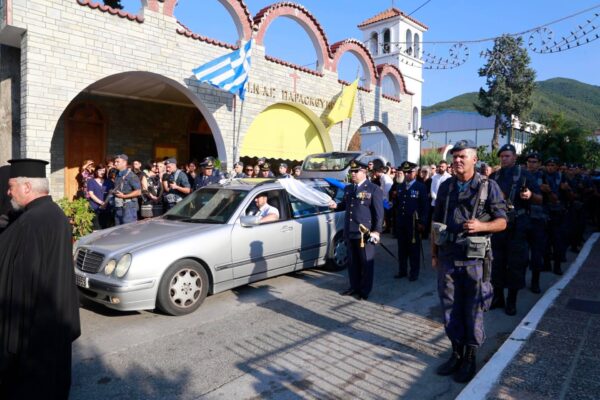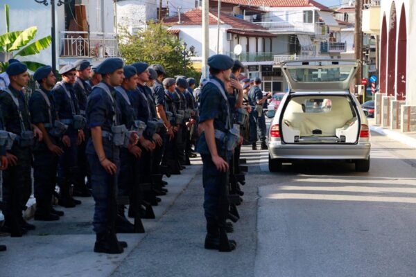 Συγγενείς, φίλοι και συνάδελφοι τον συνοδεύουν στην τελευταία του κατοικία. Τραγικές φιγούρες τα 4 ανήλικα παιδιά, η σύζυγος, τα αδέρφια και οι γονείς του.