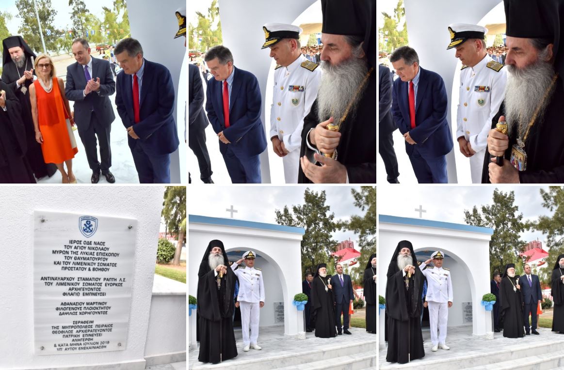 Την τελετή των Θυρανοιξίων και του Αγιασμού του Ιερού Παρεκκλησίου του Αγίου Νικολάου που δεσπόζει στον προαύλειο χώρο του Υπουργείου Ναυτιλίας, πραγματοποίησε σήμερα (24/07/2019) ο Σεβασμιώτατος Μητροπολίτης Πειραιώς κ.Σεραφείμ, συμπαραστατούμενος από τους Σεβασμιωτάτους Μητροπολίτες Σύρου κ.Δωρόθεο και Νέας Ιωνίας κ.Γαβριήλ.