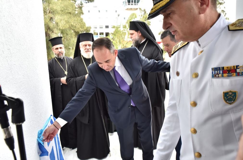 Τέλος, πραγματοποιήθηκαν τα αποκαλυπτήρια της σχετικής αναμνηστικής πλάκας, με τις δέουσες τιμές του Λιμενικού Σώματος.