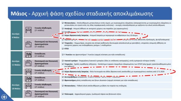 - Απο 4 Μαϊου 2020: Ατομική λατρεία με περιορισμό συναθροίσεων έως 10 άτομα.