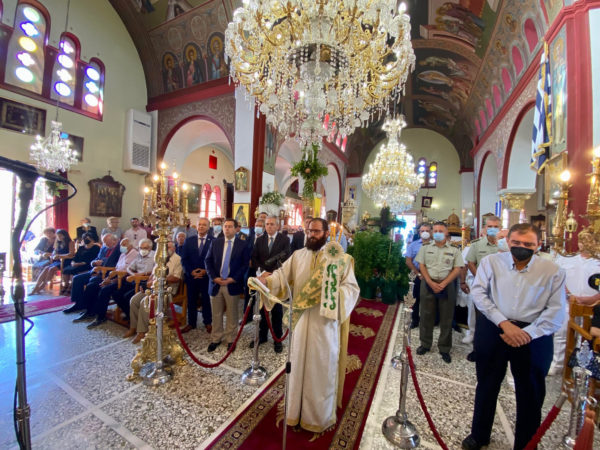 «Εδώ ήλθε και ρίζωσε από τις αρχές που διαδόθηκε ο Λόγος του Κυρίου ο Χριστιανισμός. Και στο όνομα της Ορθοδοξίας και του Σταυρού μαρτύρησαν στο διάβα των αιώνων, οι Έλληνες του Αρχιπελάγους, απέναντι στον αλλόθρησκο ζυγό. Γι’ αυτό και σήμερα, η καρδιά της Ελλάδας συνεχίζει να κτυπά στο Αιγαίο» πρόσθεσε. Παρόντες στην Θεία Λειτουργία ήταν, μεταξύ άλλων, ο υπουργός Μετανάστευσης και Ασύλου κ. Νότης Μηταράκης, ο δήμαρχος Χίου κ. Σταμάτης Κάρμαντζης και ο καπετάν Παναγιώτης Τσάκος.