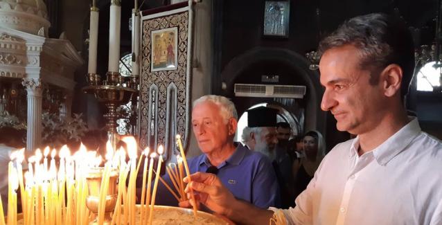 Αμέσως μετά την άφιξή του στο νησί, ο κ. Μητσοτάκης μετέβη στον ναό της Παναγίας κατά την ώρα του Εσπερινού, όπου τον υποδέχθηκε ο Σεβ. Μητροπολίτης Σύρου κ. Δωρόθεος.