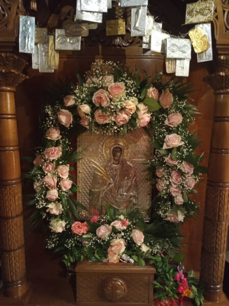 Η φετινή πανήγυρις είχε ιδιαίτερο χαρακτήρα αφού η “εκ γης ανατείλασα” Ιερά Εικόνα της Αγίας, περιενδύθηκε πολυτιμότατο αργυρό κάλυμμα, φιλοτεχνημένο με μεράκι και το οποίο προσέφερε ευλαβέστατη κάτοικος του Πεταλιδίου και μεταφέρθηκε στη μόνιμη καθέδρα της, στον παλαιό ιστορικό ναό της, στην τοποθεσία Μπαλή της περιοχής.
