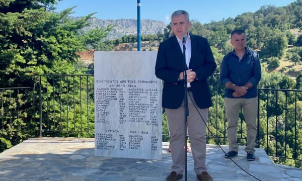 «Μπορεί να πέρασαν οκτώ δεκαετίες αλλά είμαστε εδώ για να τιμήσουμε τη μνήμη των πατριωτών όχι μόνο γιατί το οφείλουμε ως χρέος σε αυτούς που έδωσαν τη ζωή τους, στις οικογένειες που έχασαν τους δικούς τους ανθρώπους και βίωσαν ένα τραύμα πολύ σκληρό, αλλά και γιατί οφείλουμε να διδασκόμαστε από την ιστορία, να αντλούμε διδάγματα, ιδιαίτερα σε μία εποχή που αναβιώνουν επικίνδυνοι, ανιστόρητοι αναθεωρητισμοί στην Ευρώπη, αλλά και στη γειτονιά μας, όπου έχουμε τον εξ ανατολών γείτονα που ευθέως επιβουλεύεται τα κυριαρχικά δικαιώματα της χώρας μας».