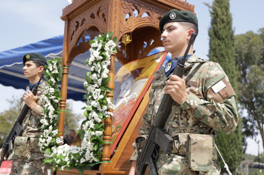 Τον Μεγαλομάρτυρα Τροπαιοφόρο Άγιο Γεώργιο, Προστάτη του Στρατού Ξηράς, τίμησε σήμερα η Εθνική Φρουρά στην Κύπρο, παρουσία του Υπουργού Άμυνας, Βασίλη Πάλμα, και της ηγεσίας του στρατεύματος.