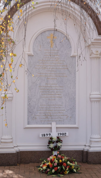 Ο πρόεδρος του Συμβουλίου Πολιτισμού «Afrikaner» της περιοχής Klipriver, Freddie Peters, στην ομιλία του είπε μεταξύ άλλων: «Αυτή την ημέρα, οι Αφρικανοί θυμόμαστε την υποστήριξη των Ρώσων εθελοντών, γιατρών και νοσοκόμων κατά τη διάρκεια του πολέμου». Μάλιστα, οι Νοτιοαφρικανοί παριστάμενοι τίμησαν τη μνήμη των Ρώσων συμμάχων τους με στεφάνια από λουλούδια στη ρωσική εκκλησία.