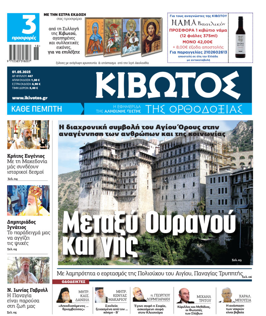 Την Πέμπτη, 1η Μαΐου, κυκλοφορεί το νέο φύλλο της Εφημερίδας «Κιβωτός της Ορθοδοξίας»