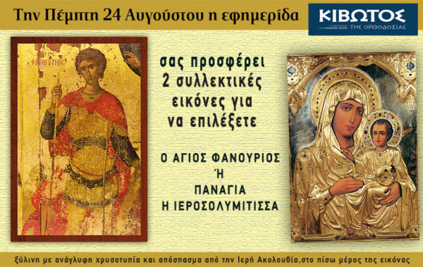 Την Πέμπτη, 24 Αυγούστου, κυκλοφορεί το νέο φύλλο της Εφημερίδας «Κιβωτός της Ορθοδοξίας»