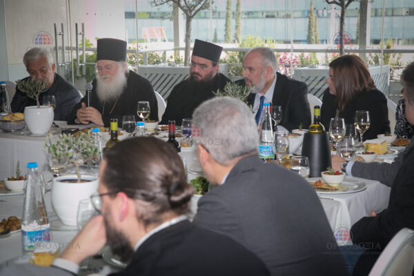 “Να κόψουμε τη βασιλόπιτα και να ζητήσουμε τις ευχές του Αγίου Βασιλείου, τις ευχές της Παναγίας για το μεγάλο έργο που γίνεται εδώ από εσάς και προσευχόμαστε ταπεινά τόσο ο κύριος πρόεδρος ο κ. Χρυσός όσο και οι συνεργάτες όλοι να παίρνουν δύναμη από το Θεό ώστε πραγματικά να βοηθούνται και να δίνουν την καλή μαρτυρία” ανέφερε, μεταξύ άλλων, ο Καθηγούμενος της ΙΜΜ Βατοπαιδίου Γέροντας Εφραίμ.