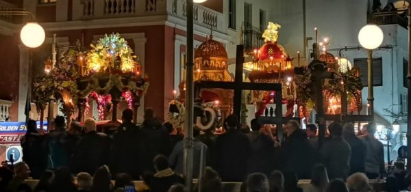 Όπως κάθε χρόνο κατά την περιφορά των Επιταφίων, οι ενορίες της πόλεως του νησιού (Παναγία – Άγιος Ελευθέριος – τρεις Ιεράρχες – Ταξιάρχες – Αγία Παρασκευή) συναντήθηκαν στην πλατεία Παντανάσσης όπου τελέστηκε δέηση.