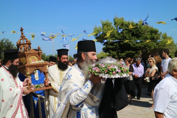 Με το πέρας της Θείας Λειτουργίας, πραγματοποιήθηκε η καθιερωμένη Λιτανεία της Ιεράς Εικόνος, της Τιμίας Κάρας και των Ιερών Λειψάνων του Αγίου πέριξ του Ιερού Ναού.