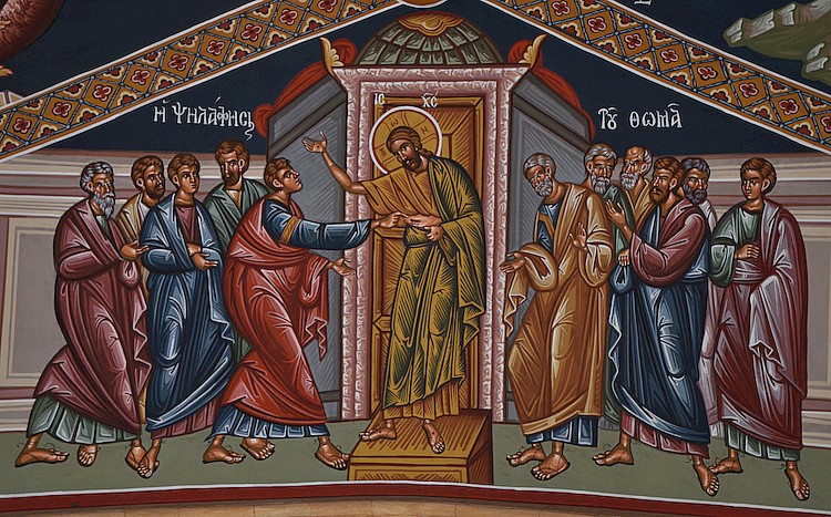 Ο Χριστός χωρίς να του το ζητήσει ο Θωμάς τον βάζει να αγγίξει στις πληγές Του και τότε ο Θωμάς αναφώνησε: «ο Κύριός μου και Θεός μου». Πείστηκε ο Θωμάς αλλά έχουμε την απάντηση του Χριστού στην αντίδραση του Θωμά «ότι εώρακάς με πεπίστευκας∙ μακάριοι οι μη ιδόντες και πιστεύσαντες». Κατά τον Ιερό Χρυσόστομο «τούτο γαρ εστι πίστεως, το τα μη ορώμενα δέξασθαι» (ΕΠΕ Τόμος 14, 1,27).