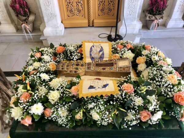 Στην υποδοχή του Ιερού λειψάνου παραβρέθηκε ο Υφυπουργός Εθνικής Άμυνας, Αλκιβιάδης Στεφανής, συνοδευόμενος από τον Αρχηγό ΓΕΣ, Αντιστράτηγο Χαράλαμπο Λαλούση.