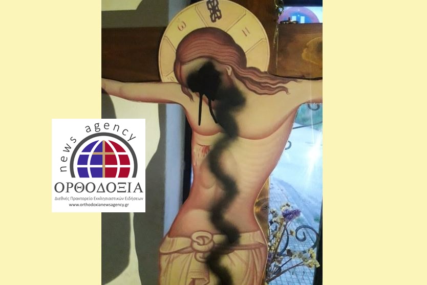 “Εγινε χθές το απόγευμα το περιστατικό, με ενημέρωσε το παιδί που αναβει τα καντήλια. Μου είπε πώς ο Εσταυρωμένος είναι γεμάτος μπογιές και μουτζουρωμένος. Αμέσως ενημέρωσα τον Σεβασμιώτατο, αλλά και την Αστυνομία” μαρτυρεί ο Εφημέριος στο Πρακτορείο “ΟΡΘΟΔΟΞΙΑ”.