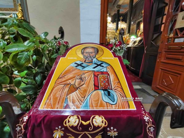 Την παραμονή της εορτής τελέστηκε μέγας πανηγυρικός εσπερινός στον Ιερό ναό της Παναγίας Ναυπλίου, μιας και ο Ιστορικός ιερός ναός του Αγίου Νικολάου είναι κλειστός εδώ και κάποια χρόνια ,μιας και είχε υποστεί σοβαρές ζημιές στην στέγη και στο εσωτερικό του.