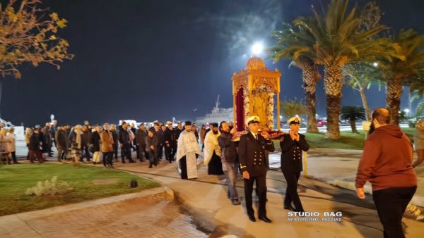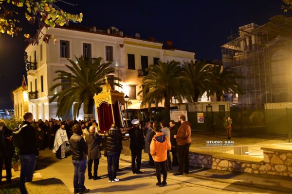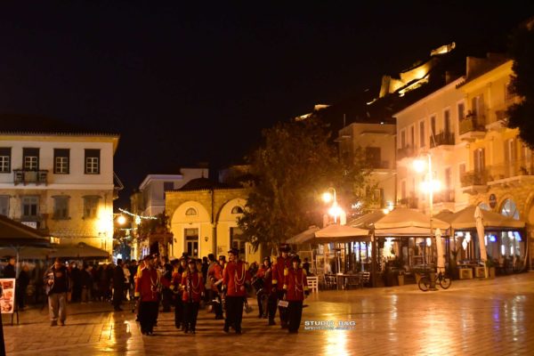 Μετά το πέρας του εσπερινού έγινε η λιτάνευση της Ιερής Εικόνας παιανιζούσης της Δημοτικής Φιλαρμονικής Ναυπλίου.