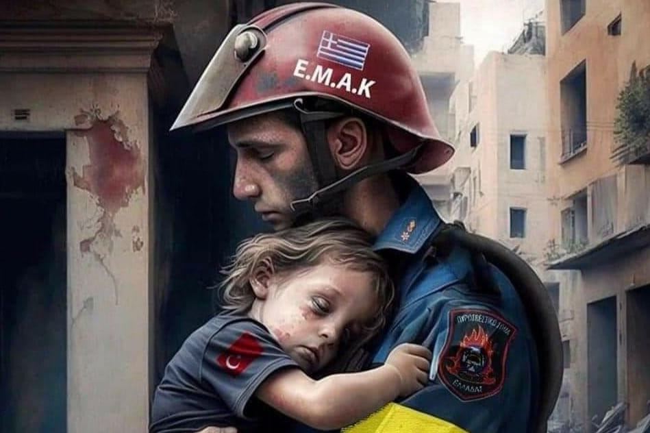 Σημείωση ope.gr: Την κεντρική φωτογραφία, η οποία από χθες κάνε τον γύρο του διαδικτύου, δημιούργησε ο Υποστράτηγος ε.α. του Πυροσβεστικού Σώματος, Παναγιώτης Κοτρίδης, προκειμένου να τιμήσει τους συναδέλφους του διασώστες που βρίσκονται στην Τουρκία.